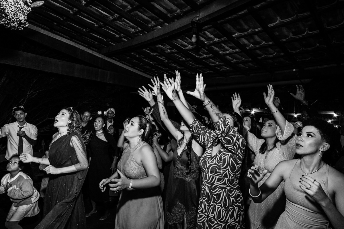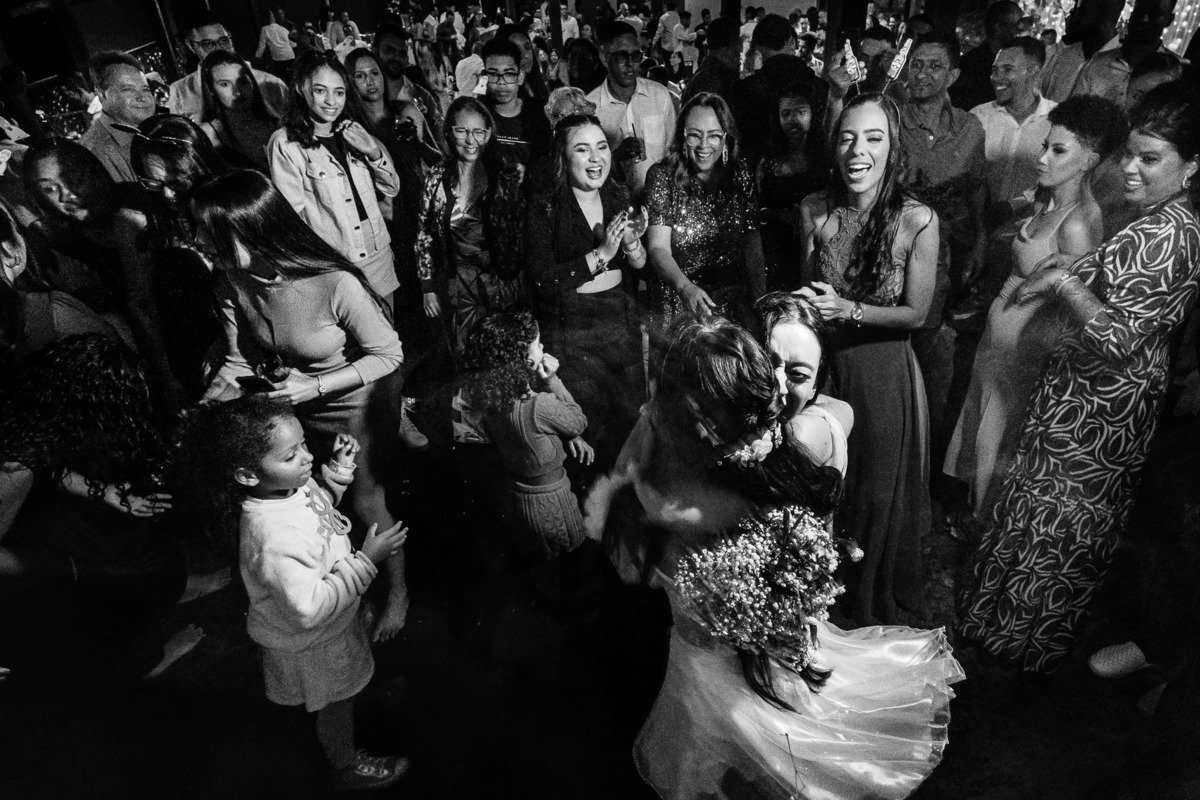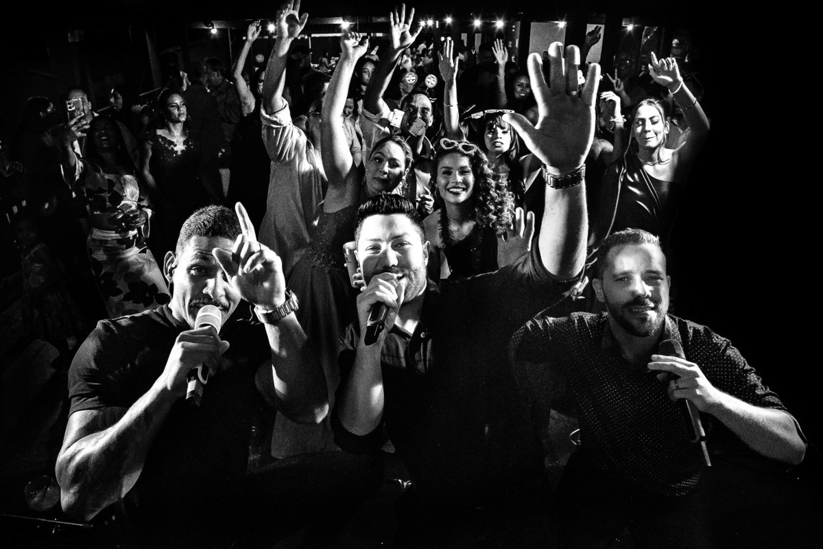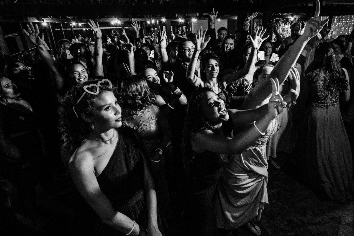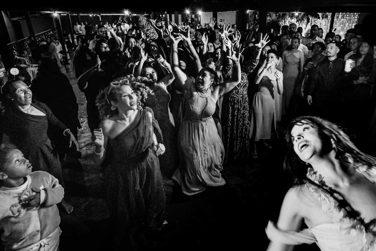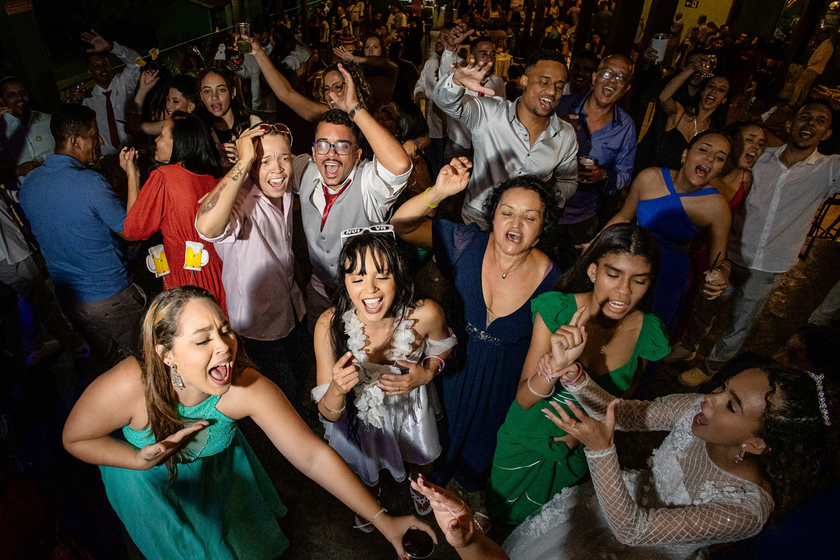 Uma turma com a energia no 220 volts que dançavam, se abraçavam e vibravam tudo junto e misturado.
