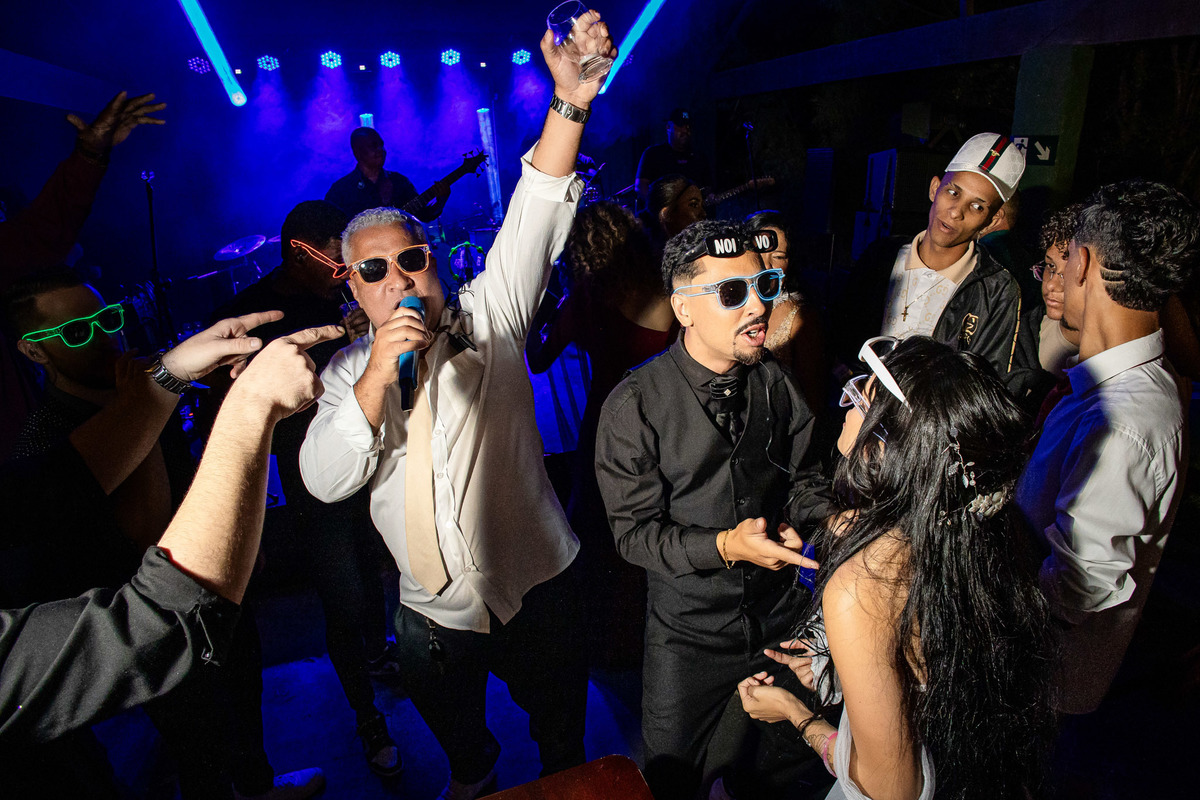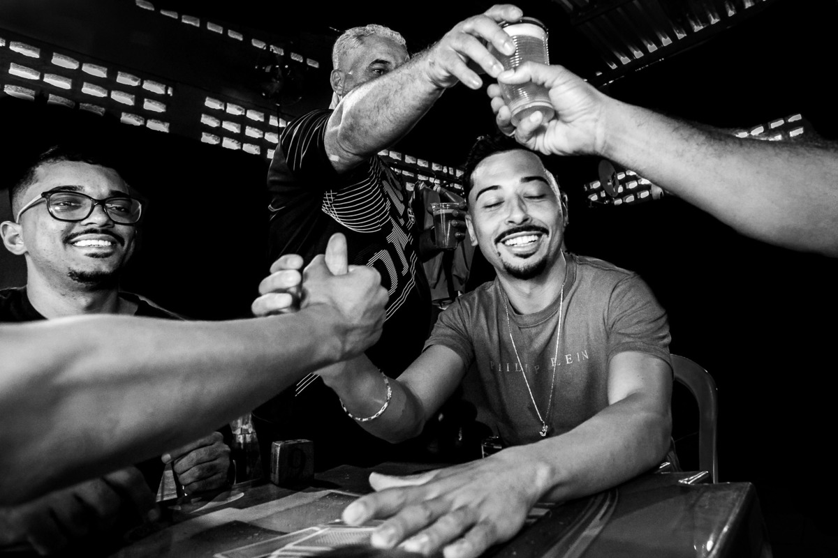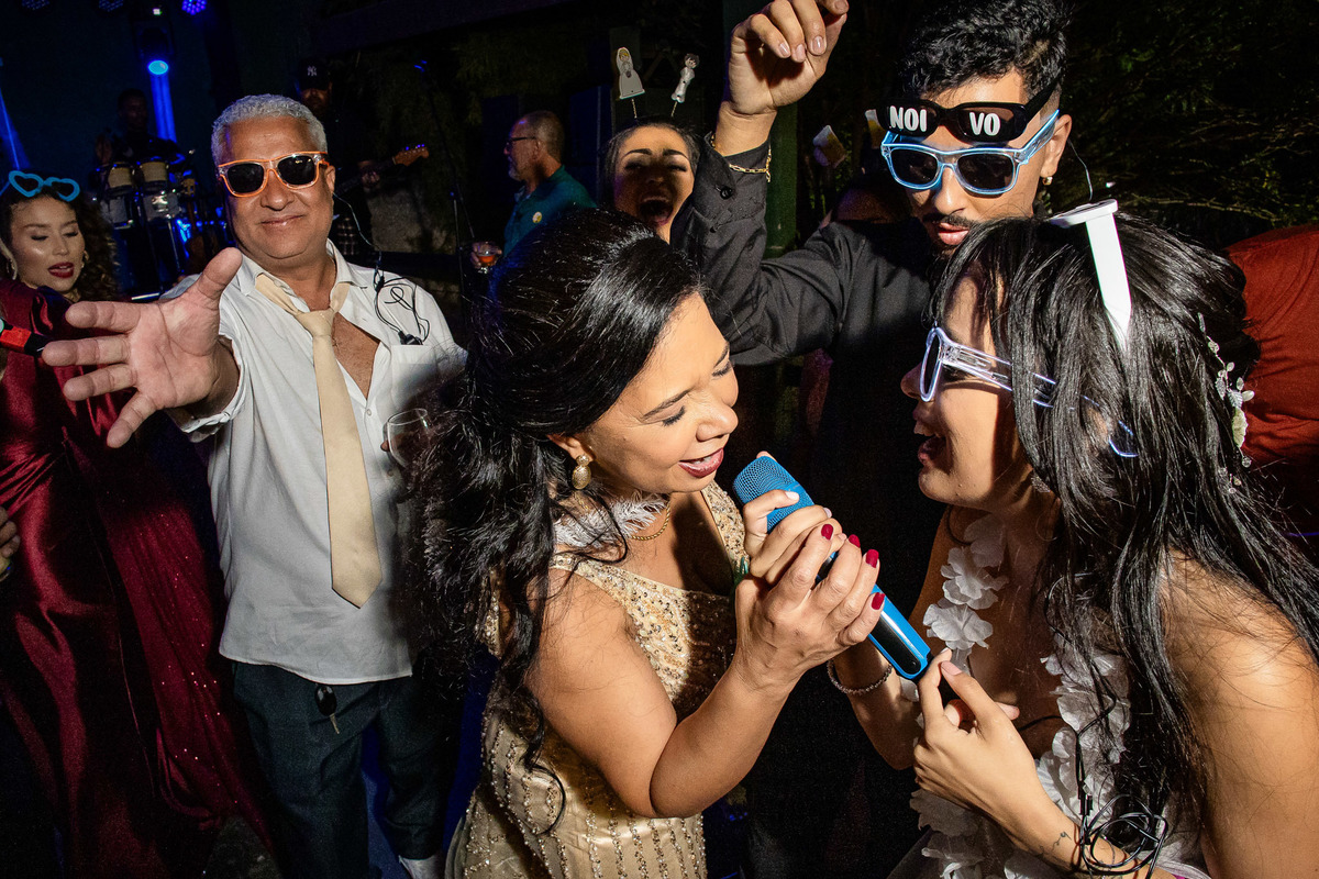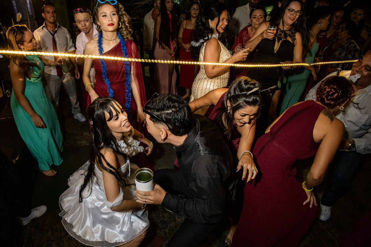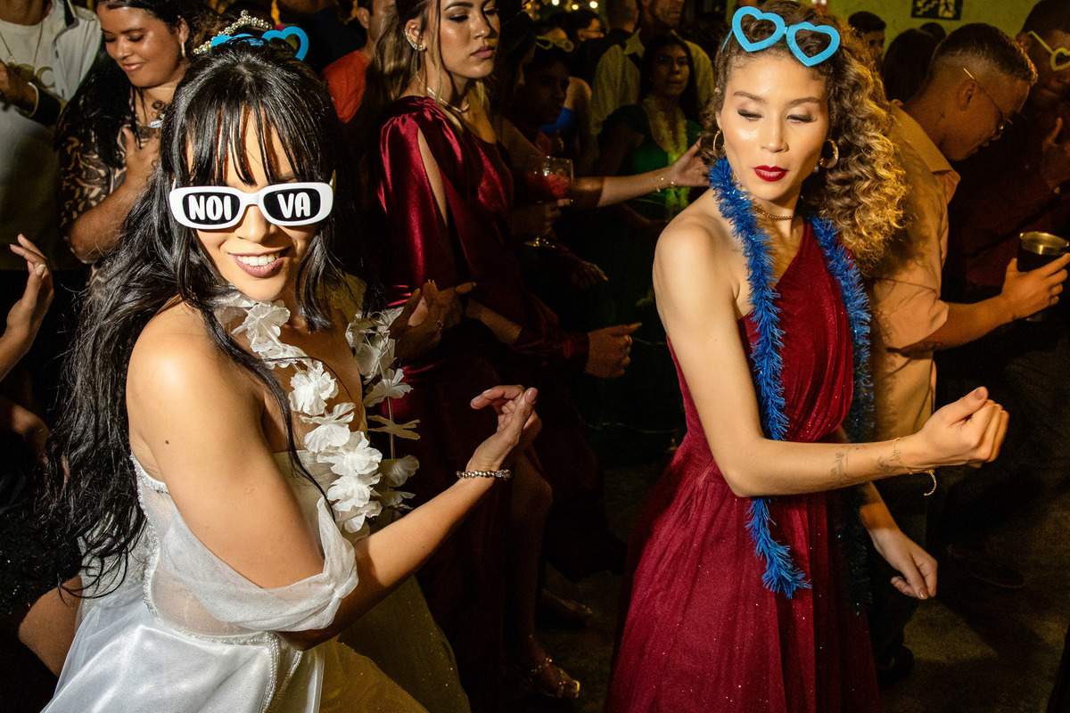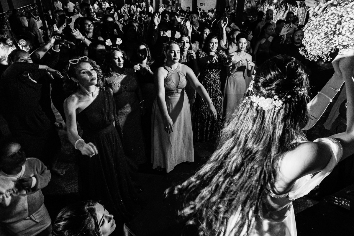 Uma turma com a energia no 220 volts que dançavam, se abraçavam e vibravam tudo junto e misturado.