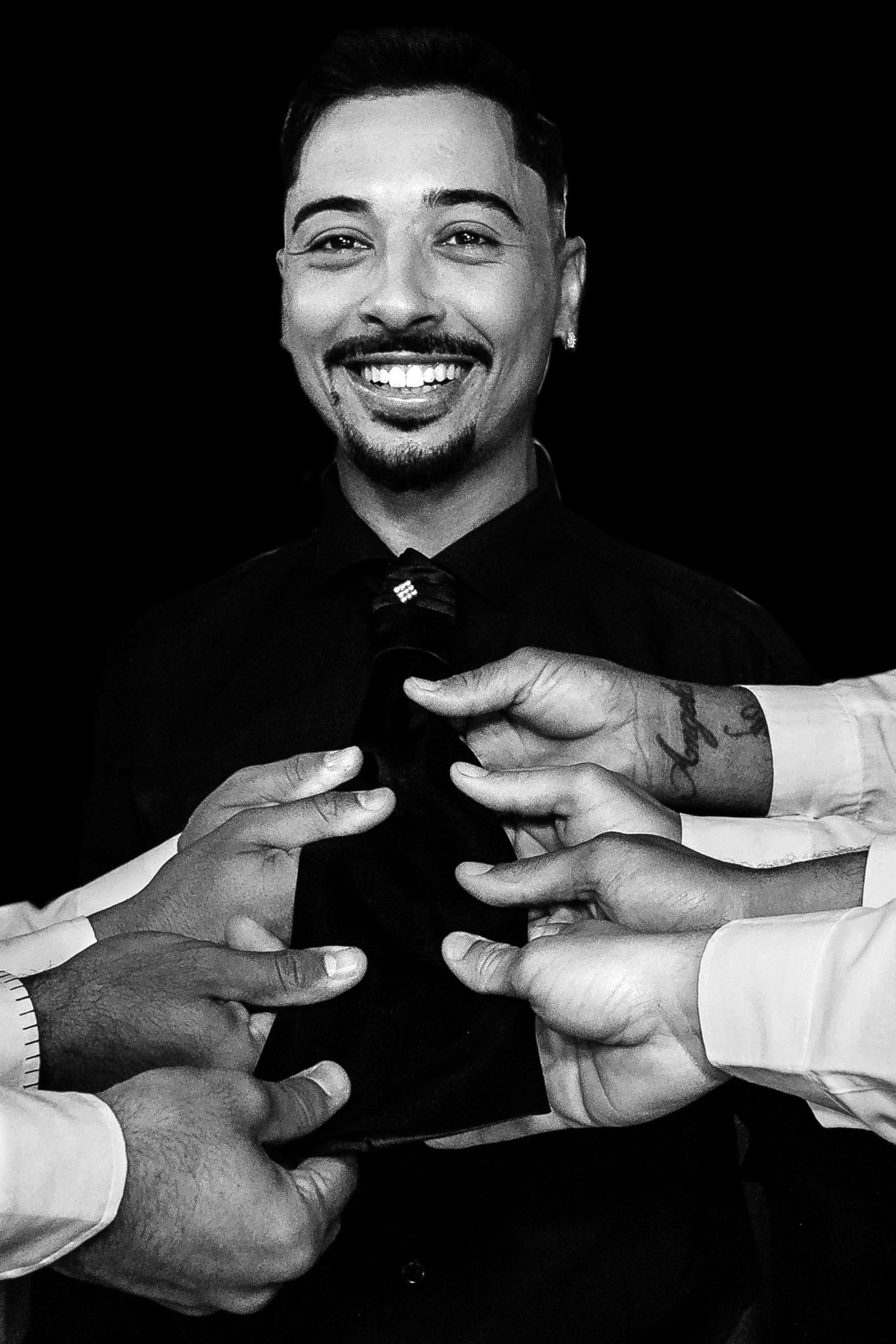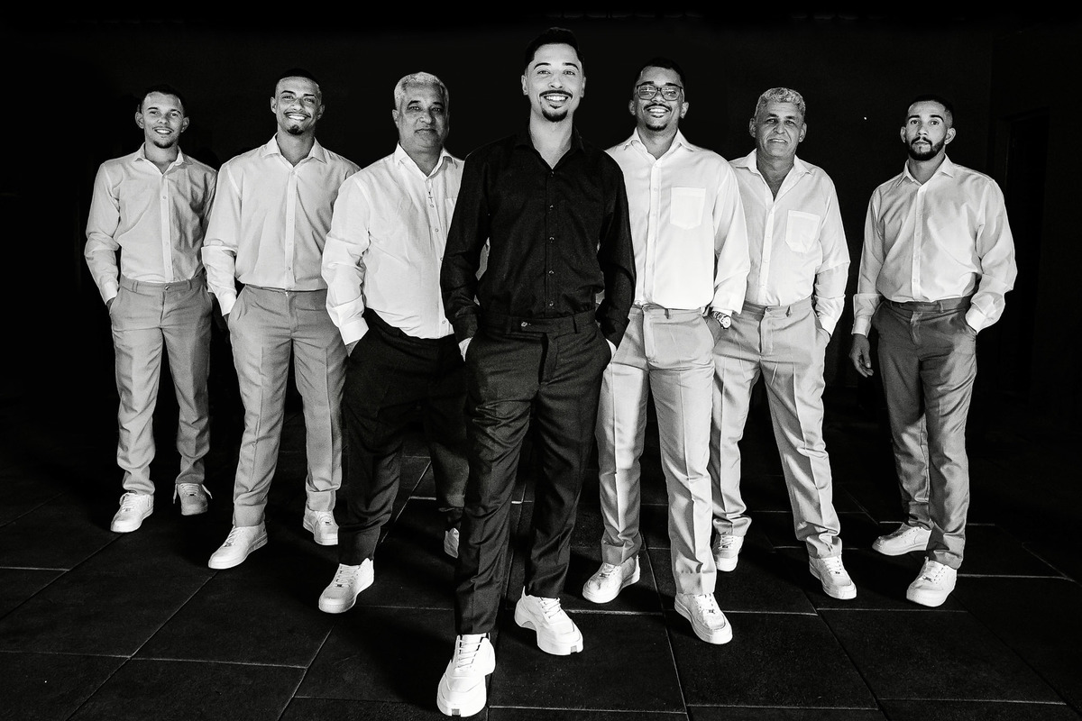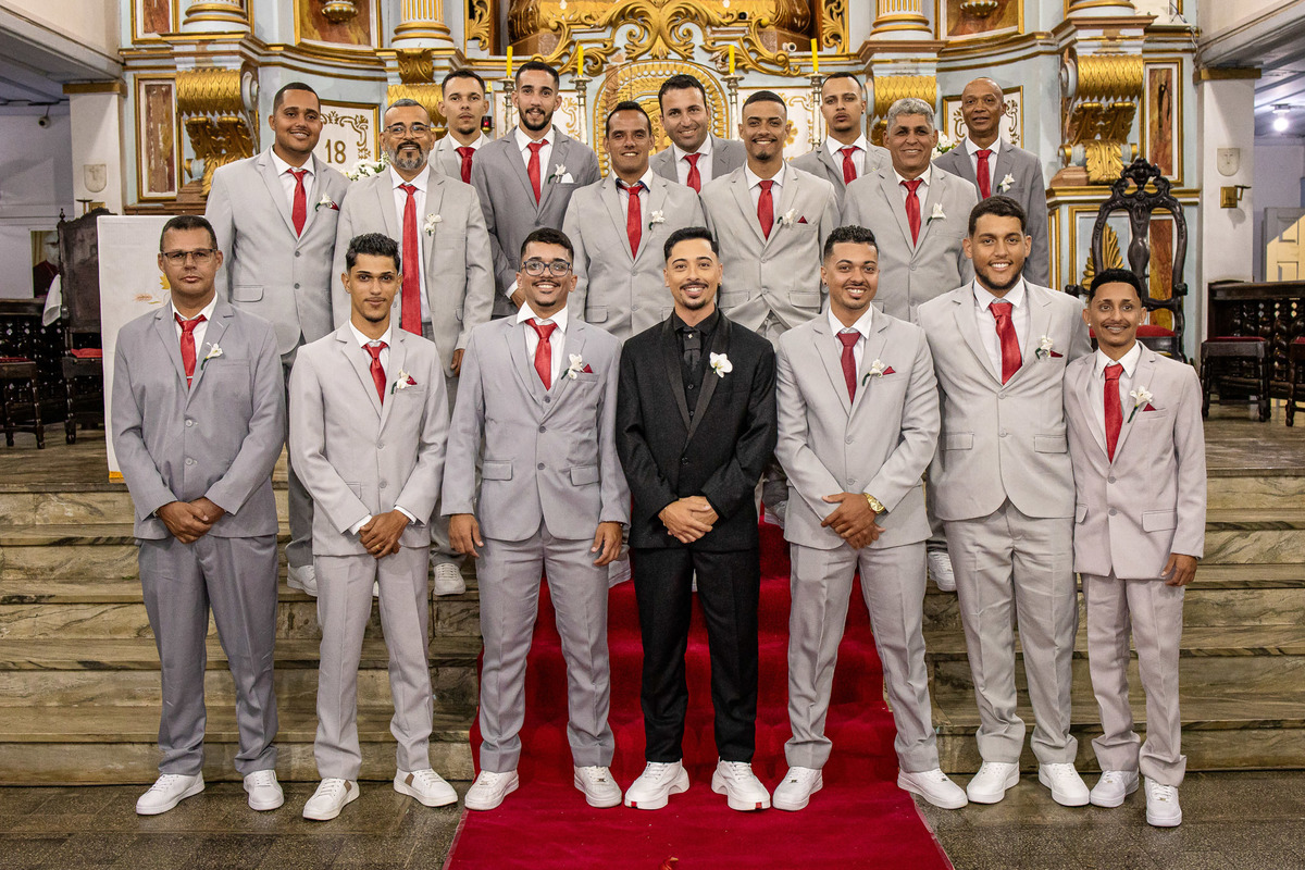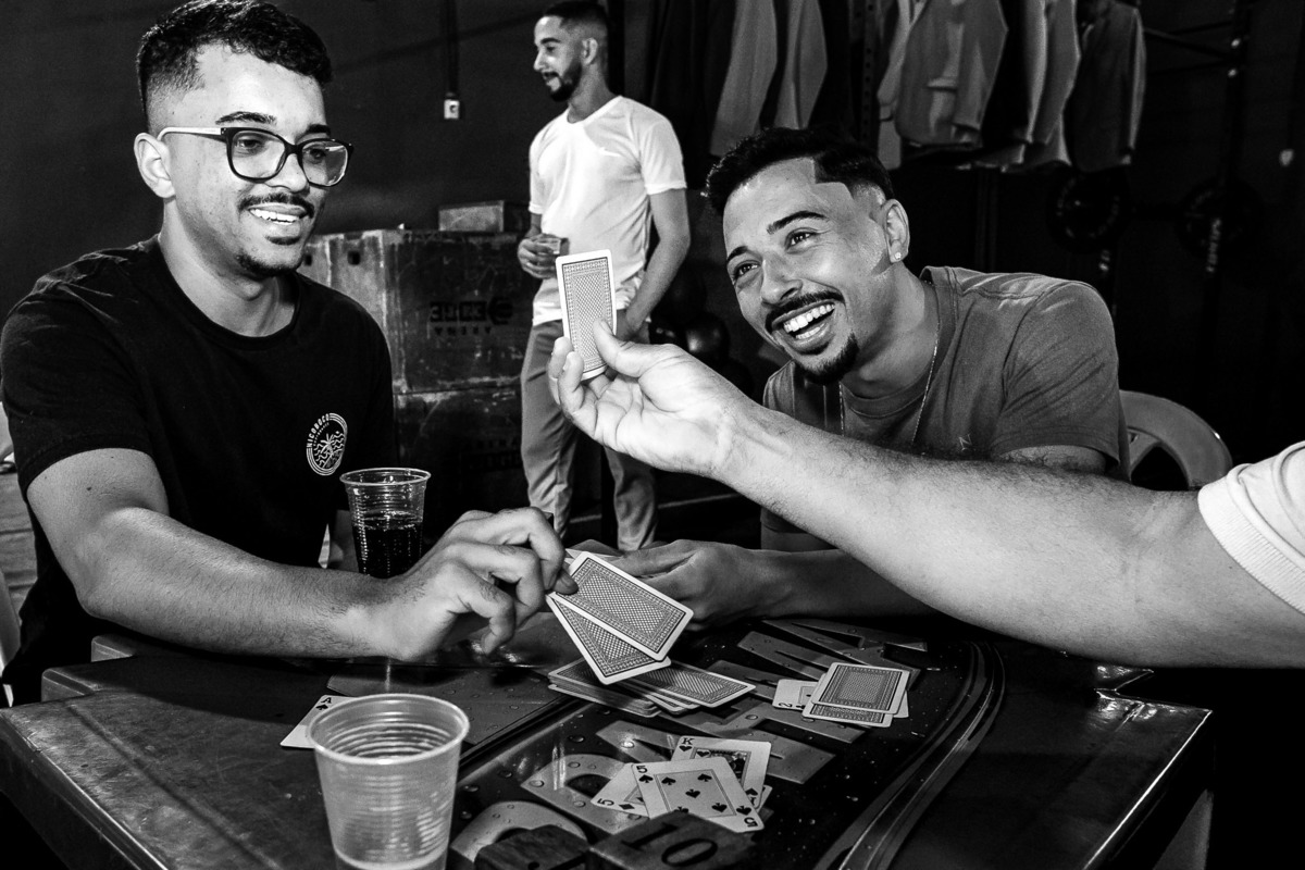 Um noivo boa praça cheio de amigos inseparáveis, que estava jogando baralho no making of,