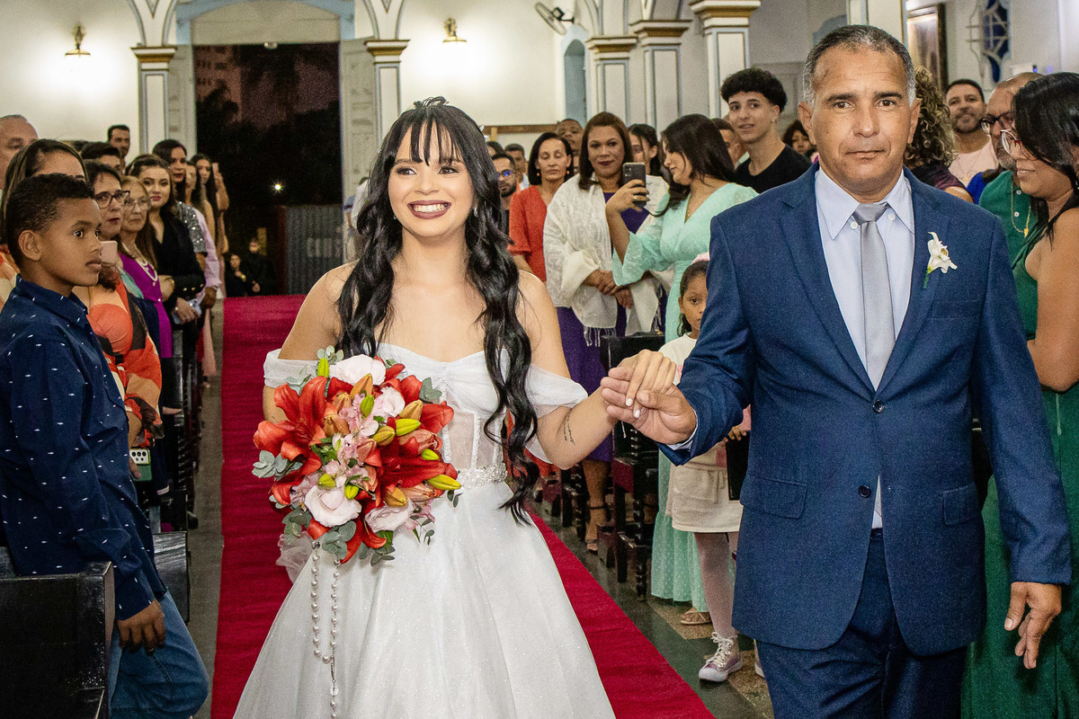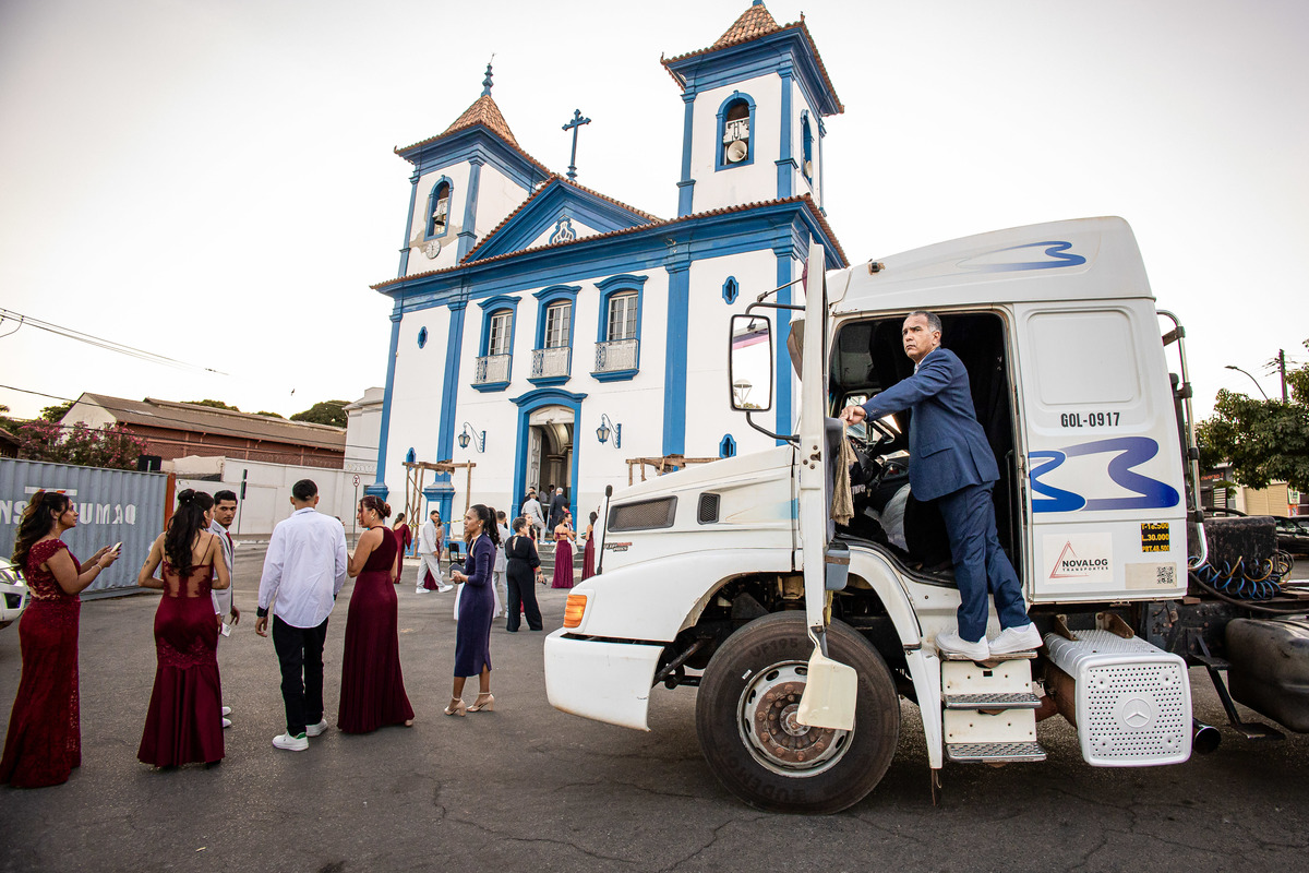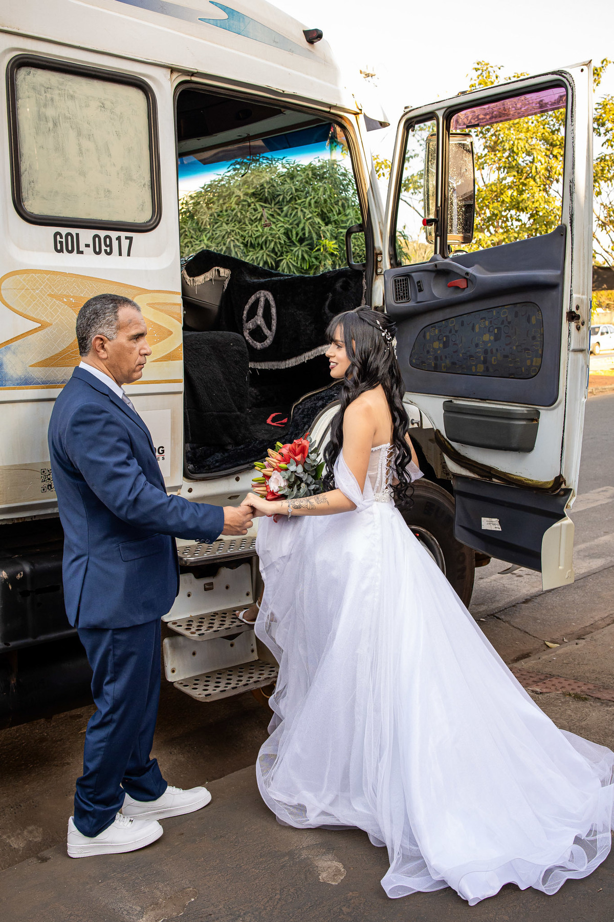 Uma noiva cheia de personalidade e que foi para a igreja na carreta do pai,