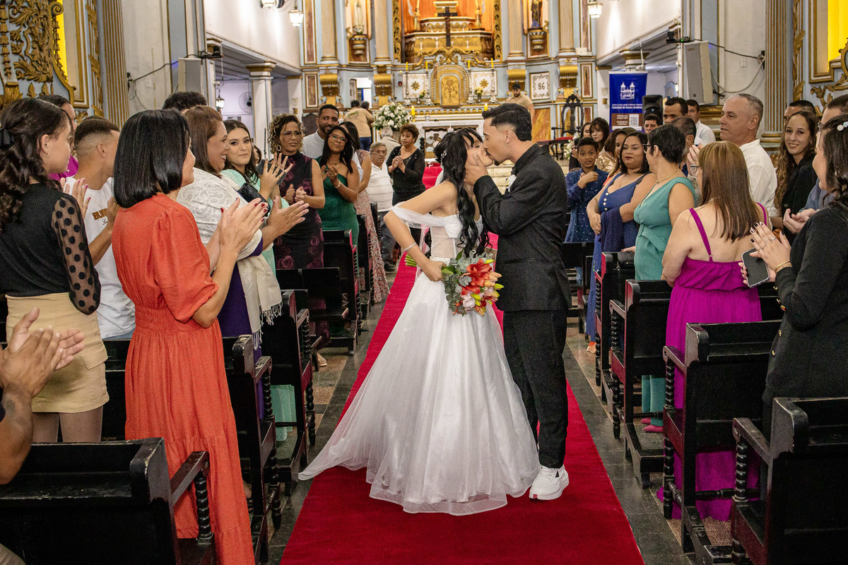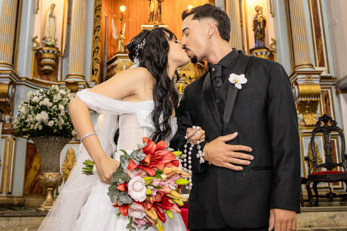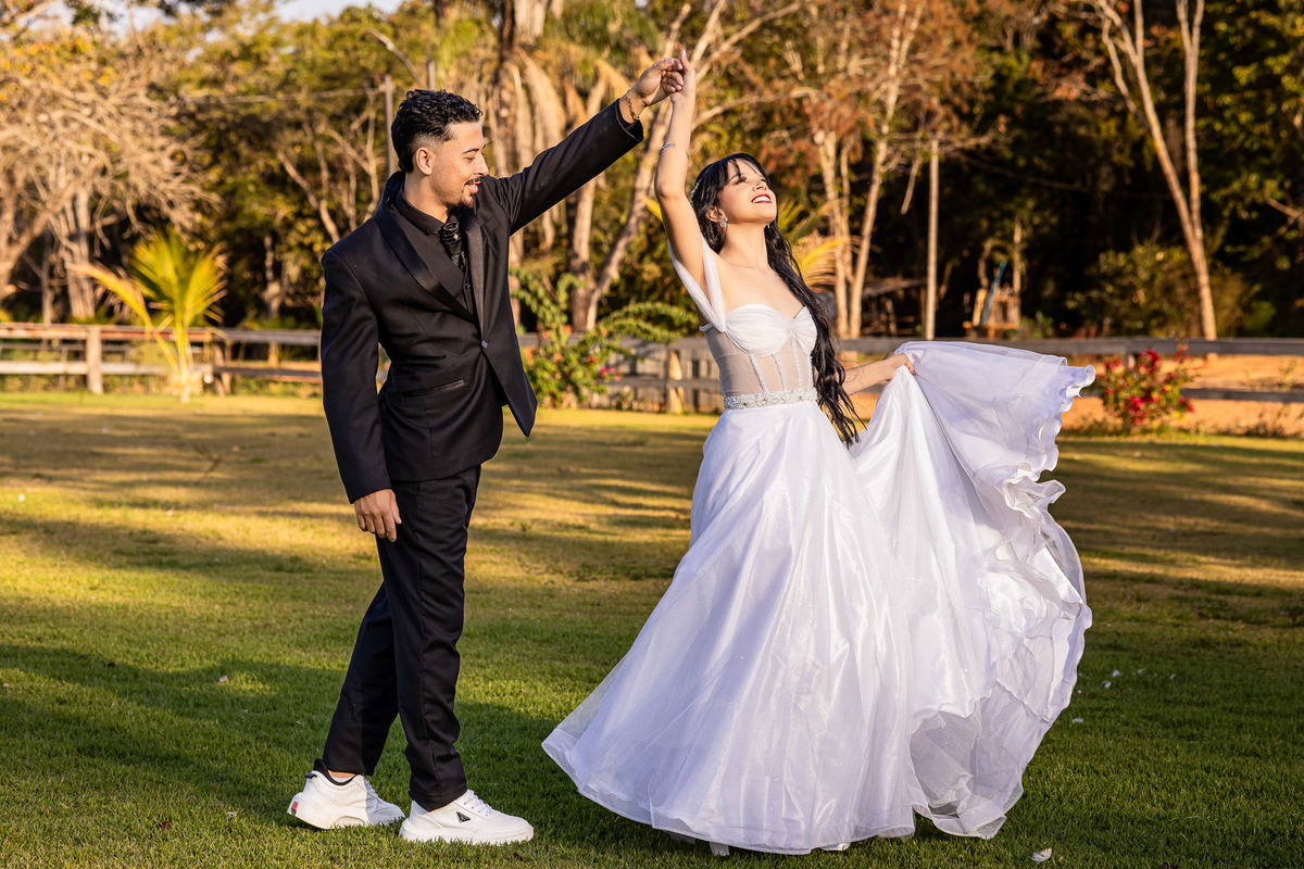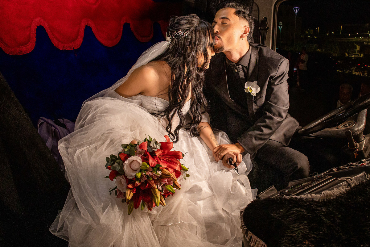 Uma noiva cheia de personalidade e que foi para a igreja na carreta do pai,