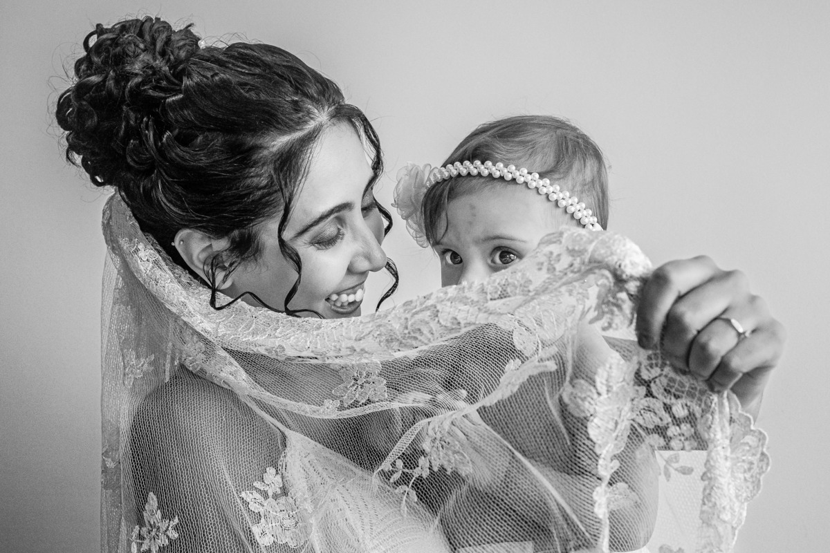 Marina se casou com a mantilha que sua avó bordou.
