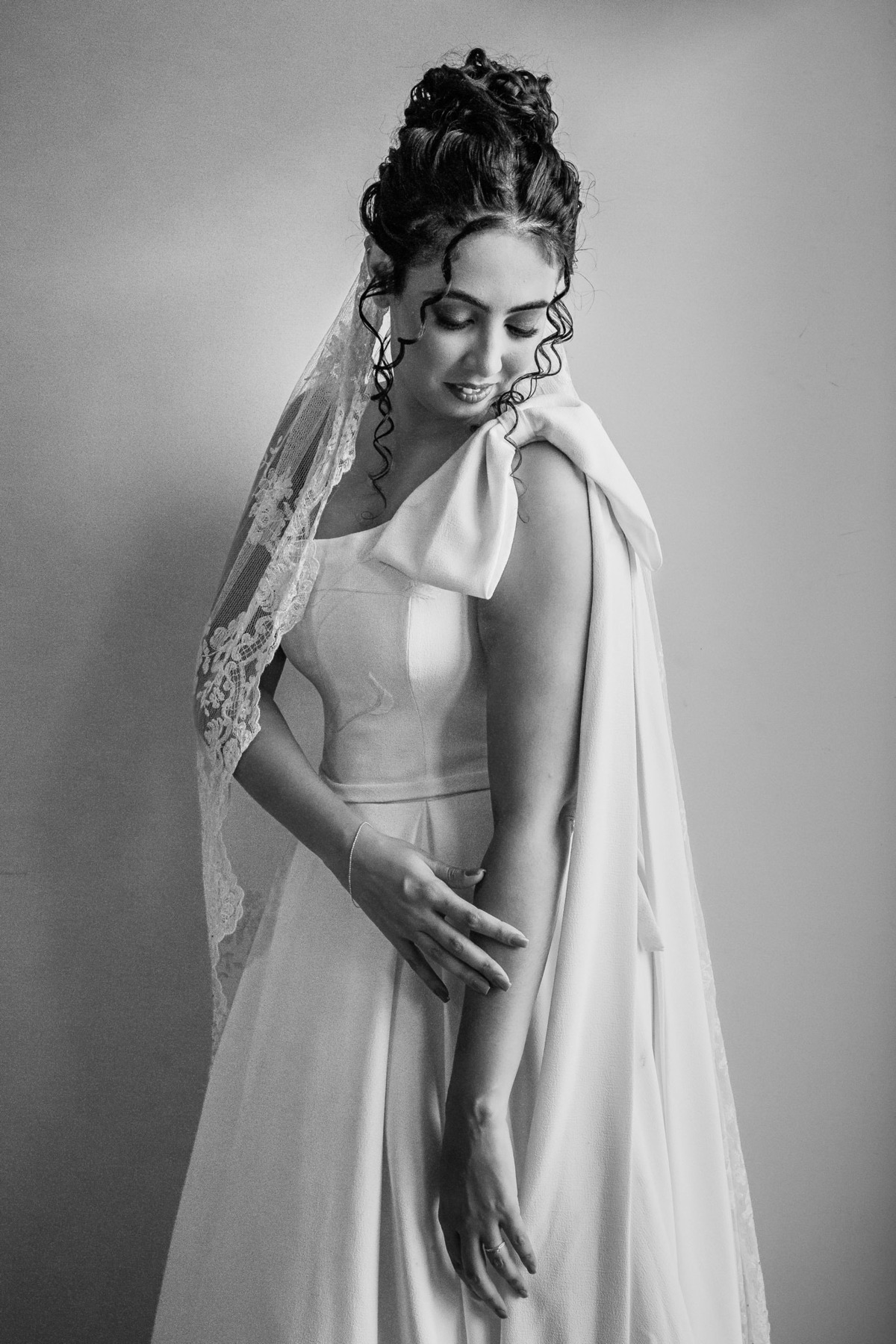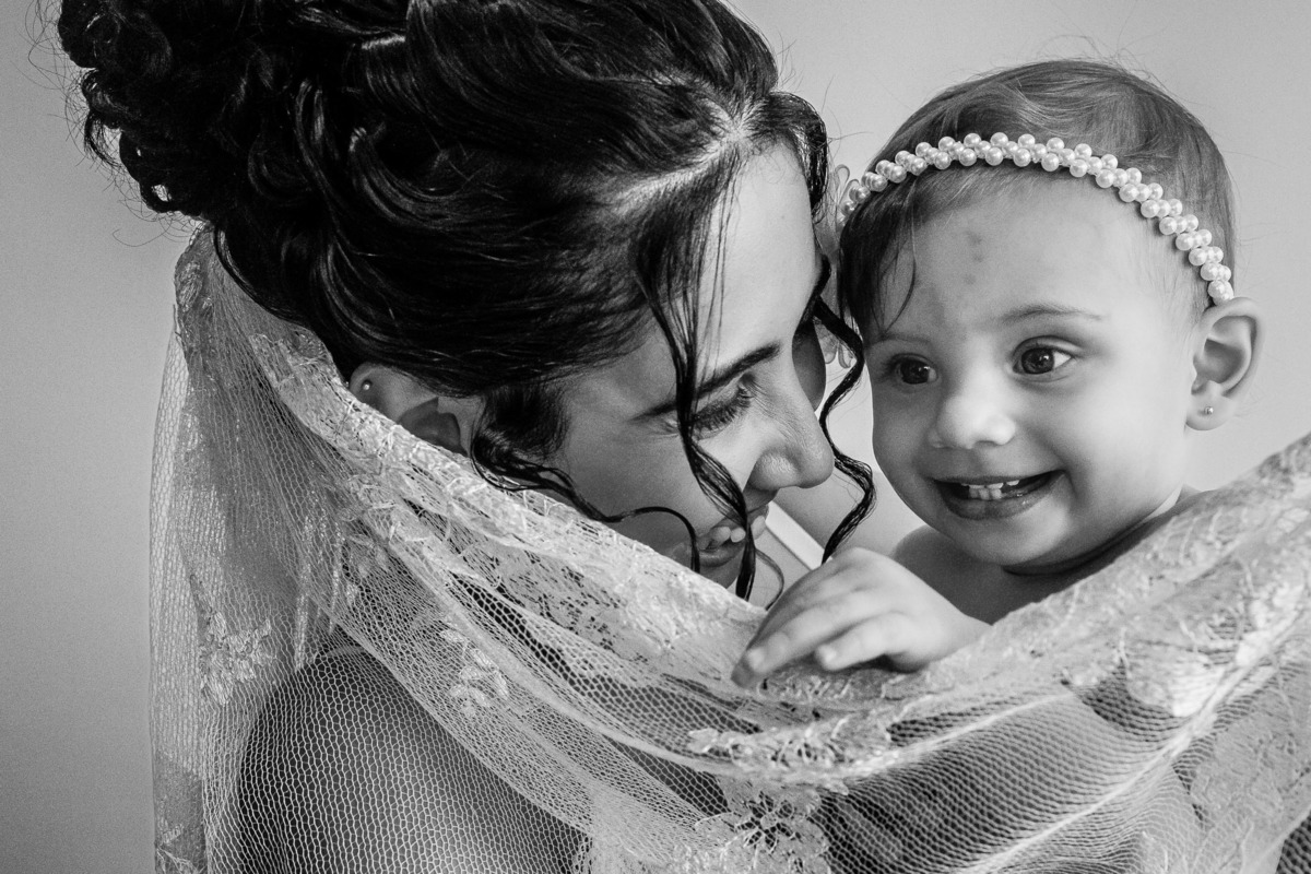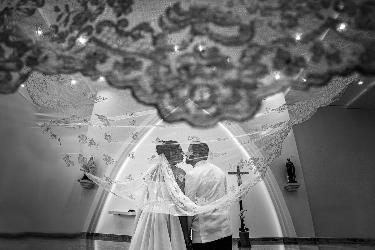 Marina se casou com a mantilha que sua avó bordou.