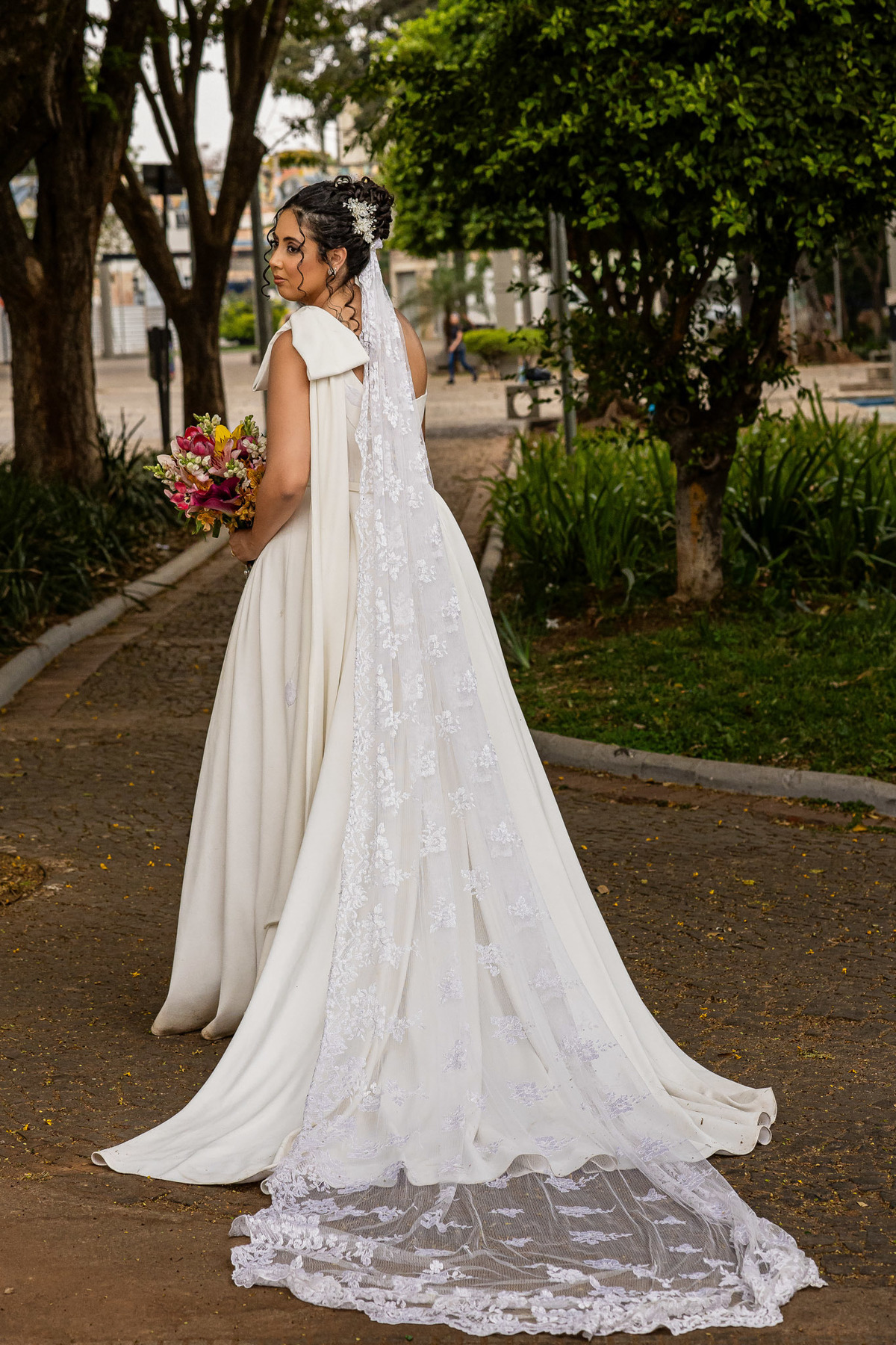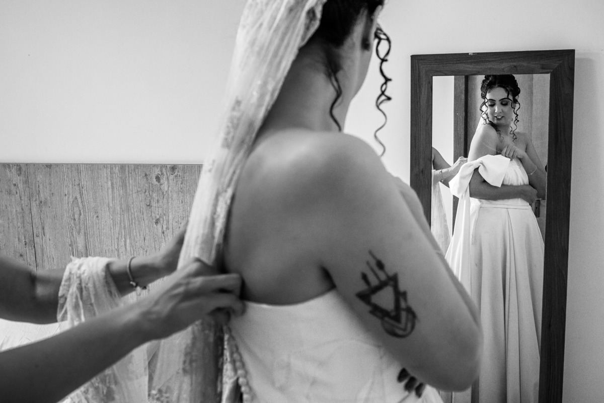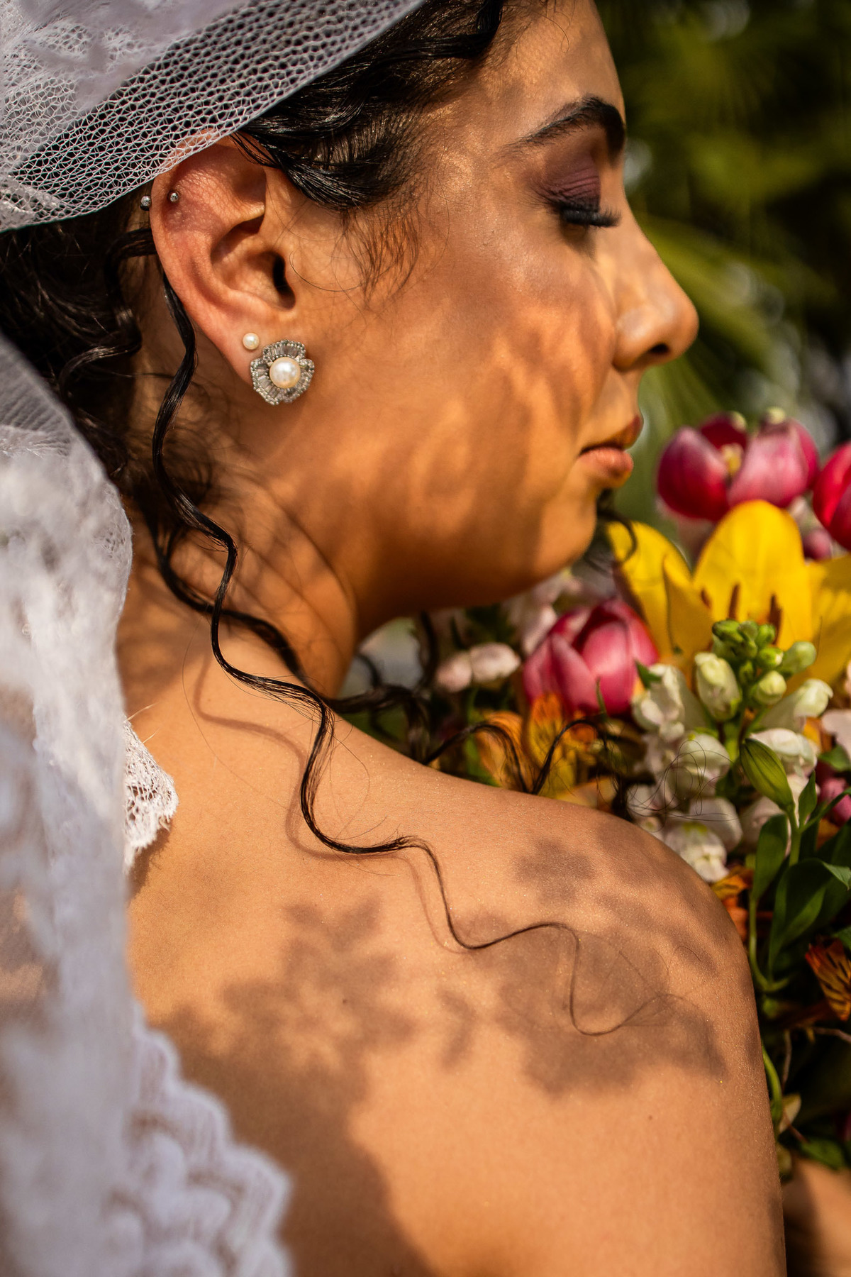 Marina se casou com a mantilha que sua avó bordou.