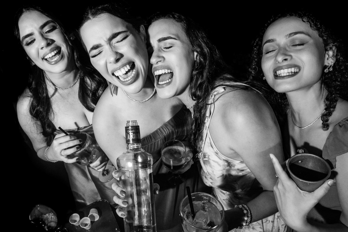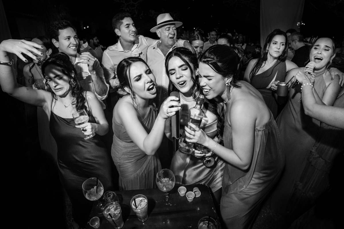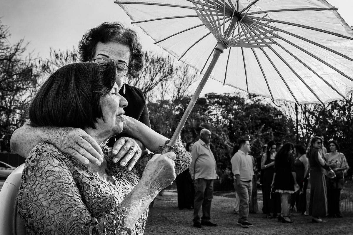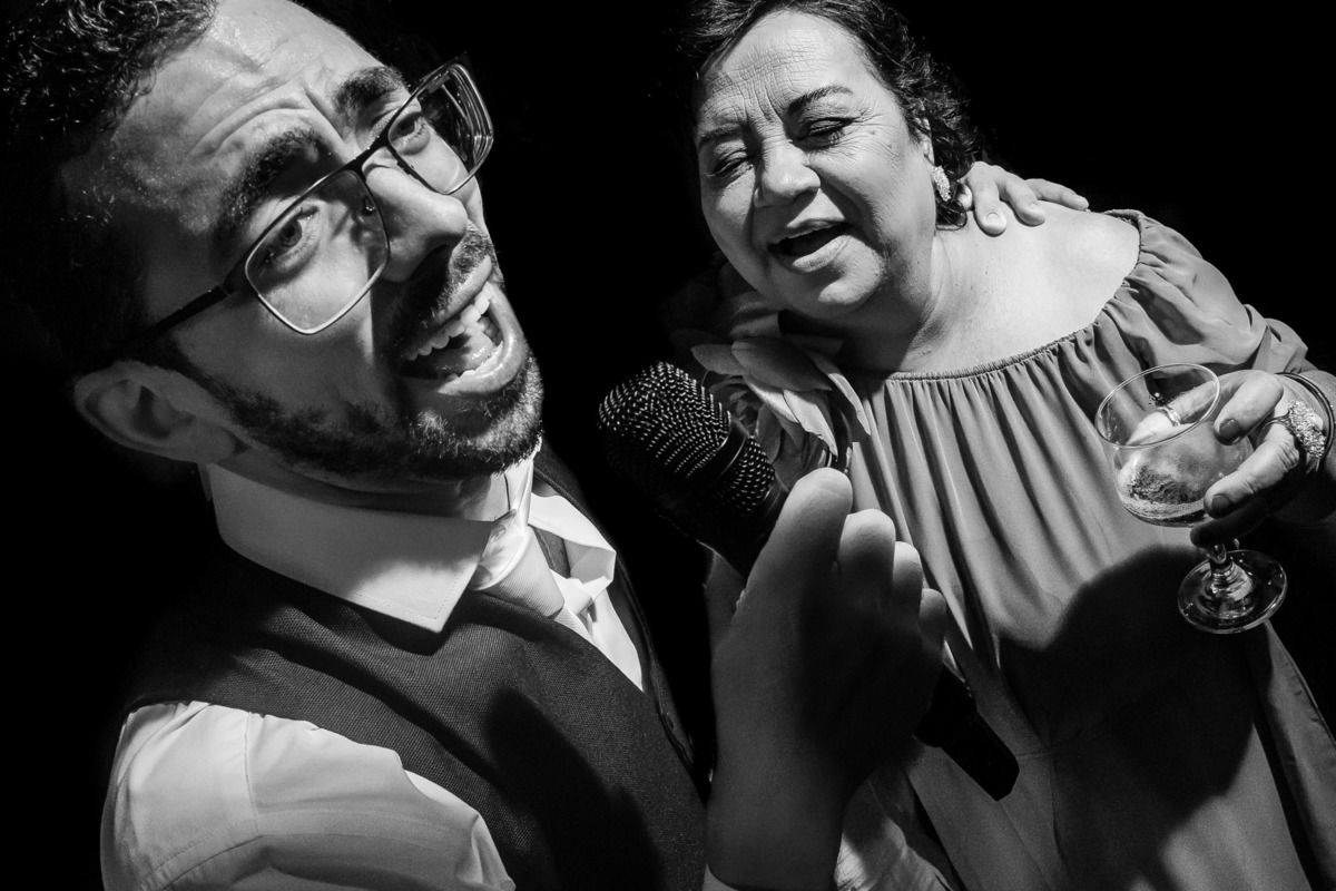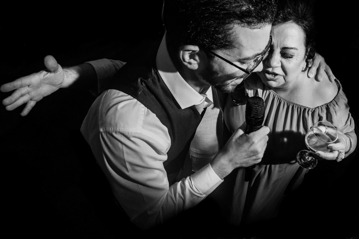 nos abraços apertados, nas risadas altas e até na música que todo mundo cantou junto com o casal.