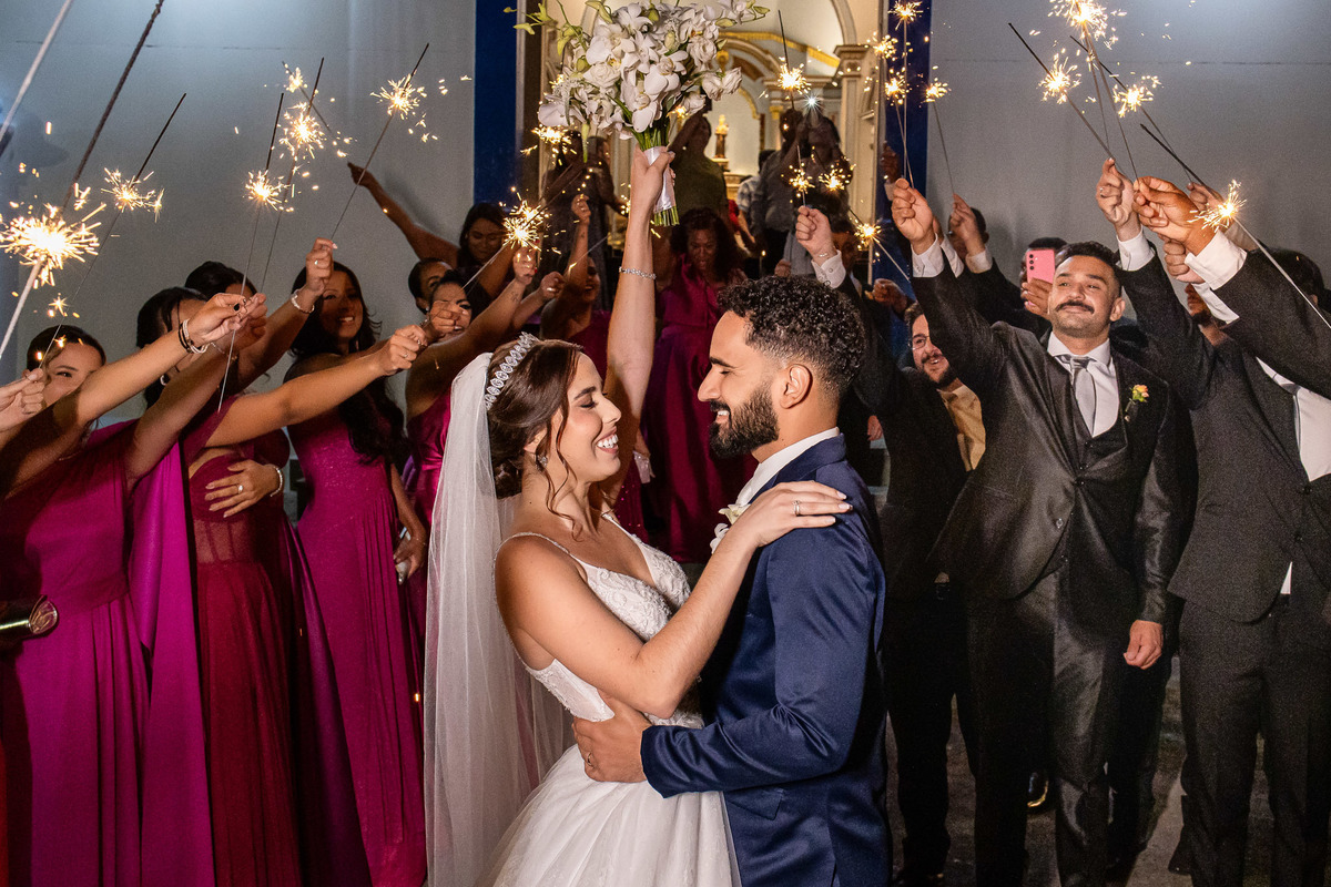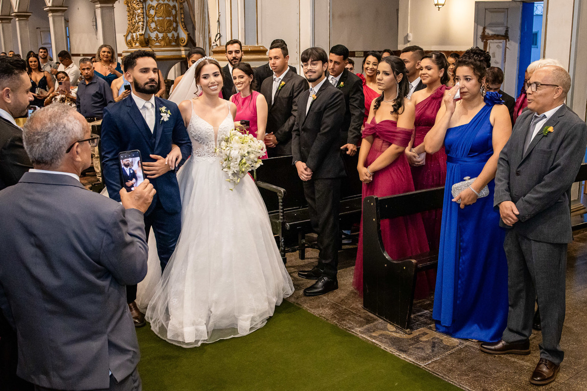 alegre e autêntica pelo casal Rafaela e Sérgio que se casaram na igreja de Santo Antônio.