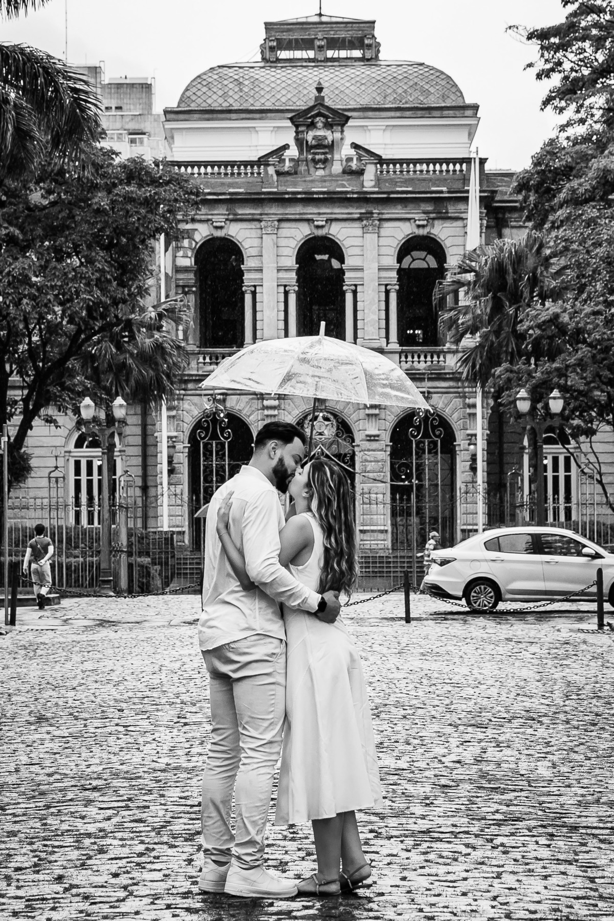 E no dia do pre wedding de Ana Alice e Vitor na Praça da Liberdade, debaixo de chuva, tudo fez sentido.